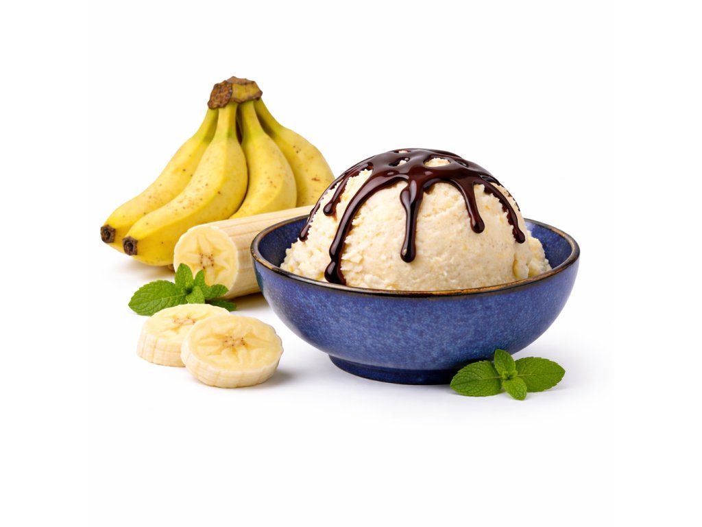 Banánový sorbet z čerstvých banánů s plnou a přirozeně sladkou chutí, vyrobený ze 40 % podílu ovoce. Prolívaný čokoládovým variegátem, který dodává dezertu jemnou čokoládovou linku a dokonale doplňuje banánovou chuť.