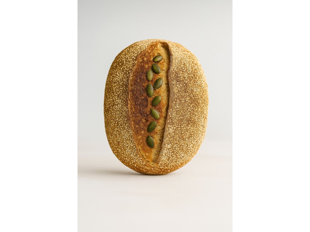 Nadýchaný a křupavý, vyrobený z kvalitních surovin a živého kvásku. Tradiční a časově náročná výroba s dlouhou fermentací chlebů dodává hlubokou a plnou chuť a jemnou střídku. Zároveň napomáhá lepší stravitelnosti.