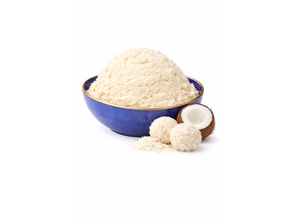 Krémová smetanová zmrzlina s výraznou kokosovou chutí, která připomíná oblíbené pralinky Raffaello.