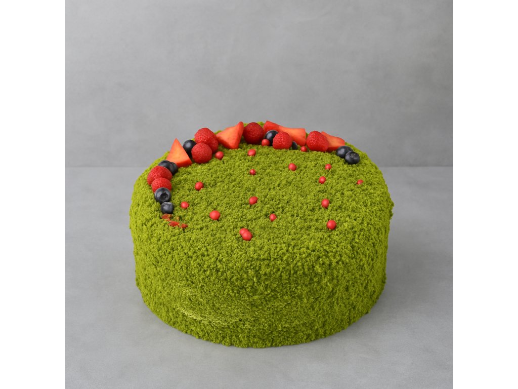Mechový dort zaujme svou přirozeně zelenou barvou, kterou získává díky čerstvému špenátu.