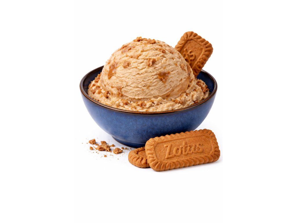 Smetanová zmrzlina s intenzivní chutí sušenek značky Lotus, jemně promíchaná a prosypaná křupavou sušenkovou drtí z těchto ikonických karamelových sušenek.